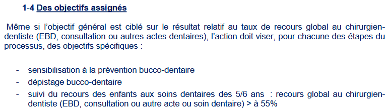 le premier plan national de prévention dentaire, et les appels d'offres en la matière passés chaque année par l'Assurance Maladie. Et ce afin de verrouiller discrètement, même