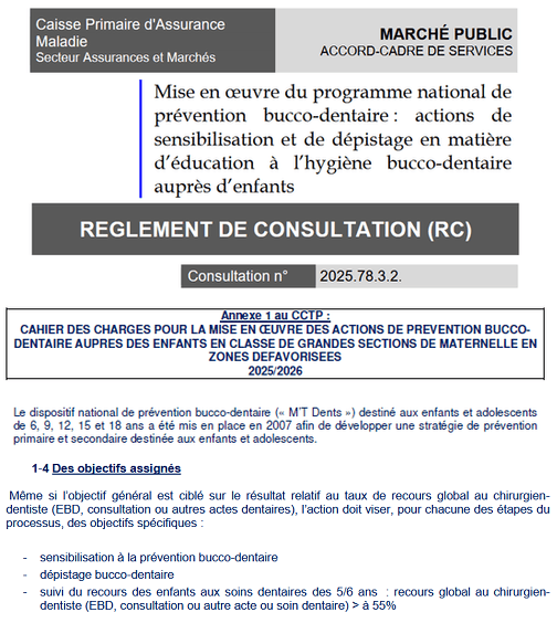 Pourquoi les appels d'offres de l'Assurance Maladie en matière de prévention dentaire, financés avec le budget de la Nation spécifiquement fléché " prévention bucco-dentaire " de près de