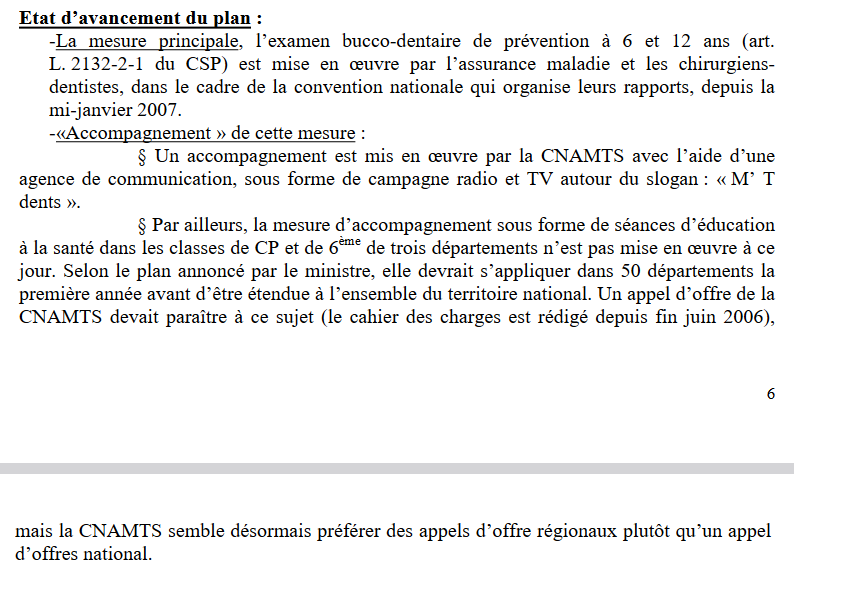 Pour comprendre un peu mieux le contexte, il faut savoir que ce n'est qu'en 2016 que la Cour des comptes a vraiment constaté sur le territoire national que : " la politique (de prévention dentaire) menée à ce jour assure une prévention effective uniquement pour les moins de 18 ans et les femmes enceintes et laisse de côté près de 80% de la population ", et que conformément à ses missions définies à l'article 47-2 de la Constitution française, notamment