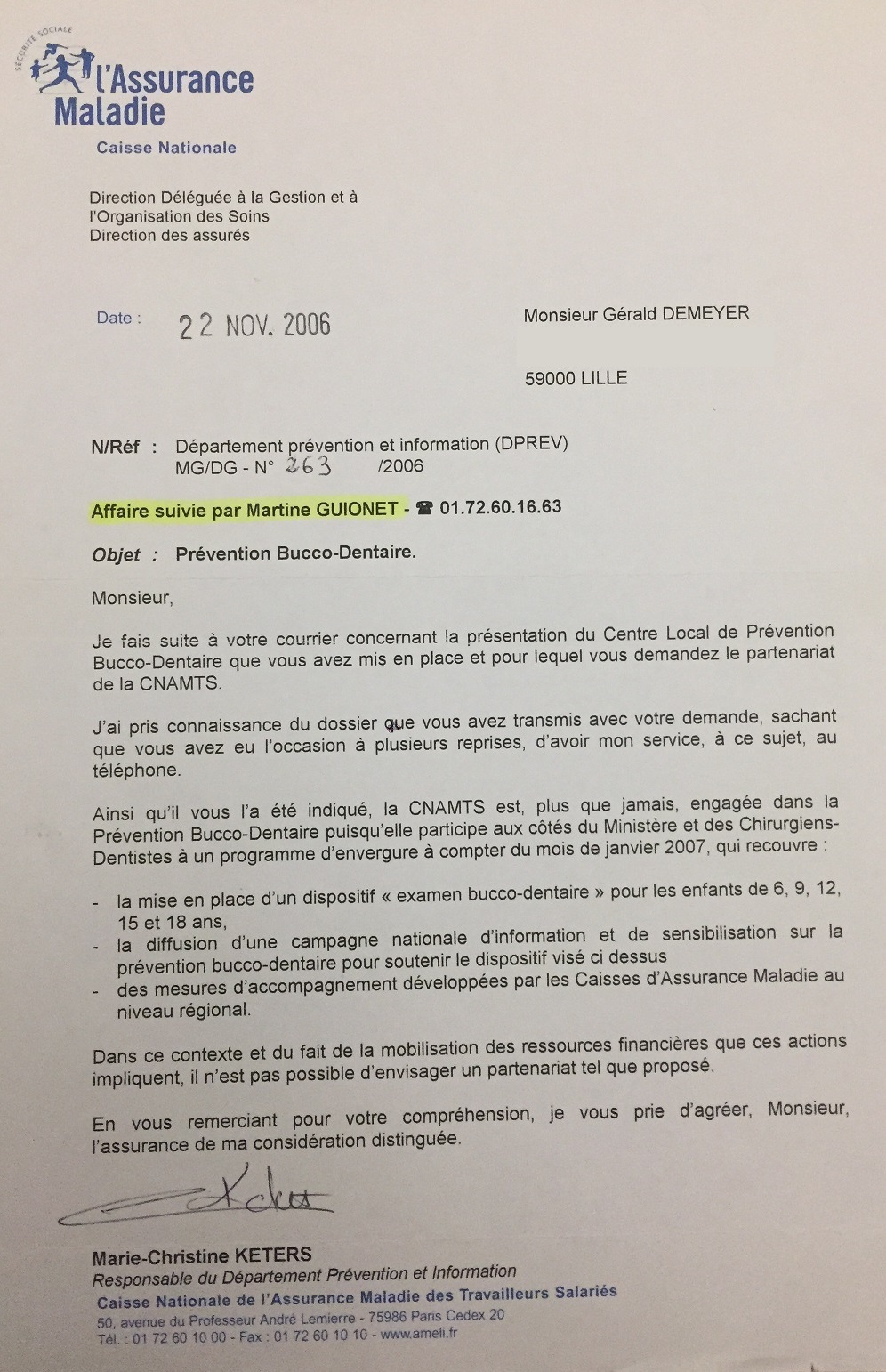 Si j'ai pu découvrir, un peu par hasard, cette situation, c'est grâce au fait que j'ai été particulièrement précurseur au début des années 2000 en souhaitant (naïvement) apporter de véritables solutions concrètes et innovantes de prévention dentaire à l'ensemble de la population française, sans discrimination d'aucune sorte, puisqu'en France, le droit à la protection de la santé, y compris orale, est