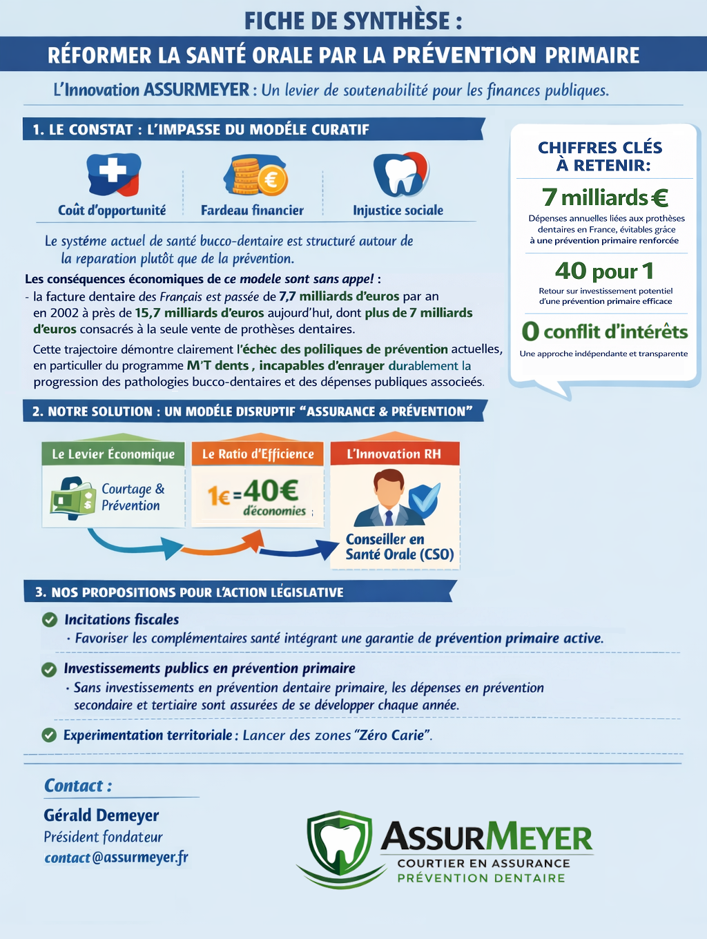 L'objectif, à ce stade, est de présenter de manière synthétique et pédagogique, compte tenu de la complexité technique et économique des secteurs du dentaire et de l'assurance en France, les grandes orientations du projet à divers interlocuteurs : pouvoirs publics, partenaires assureurs et investisseurs, tout en sécurisant les informations stratégiques liées à nos innovations.