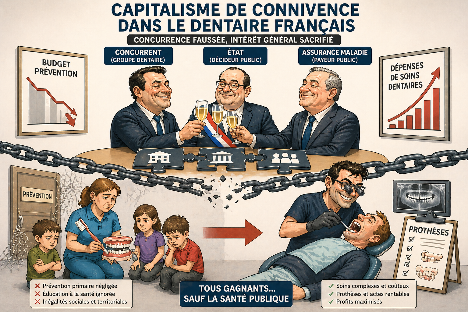 Autrement dit, la politique publique de prévention dentaire menée en France vise-t-elle réellement à protéger la santé des Français … ou à protéger discrètement les intérêts financiers de certains acteurs privés ?
