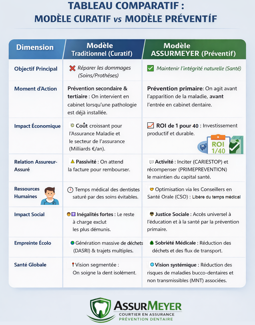 QUI SOMMES NOUS ? expose notamment les motivations qui ont conduit à la création d’un modèle économique innovant et disruptif, situé à la croisée de la prévention dentaire et du courtage en assurance.